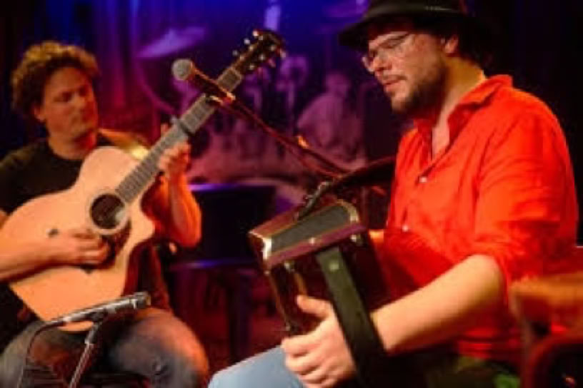 Ein neues Projekt des Akkordeonisten Wouter Kuyper, zusammen mit dem Gitaristen Joris Albas. Die beiden wunderbaren niederländischen Musiker, die ich (Claudia N.) gerade auf dem Boombal hören durfte, machen sehr schöne, sehr tanzbare Musik mit einem Schwerpunkt auf bretonischen Tänzen.