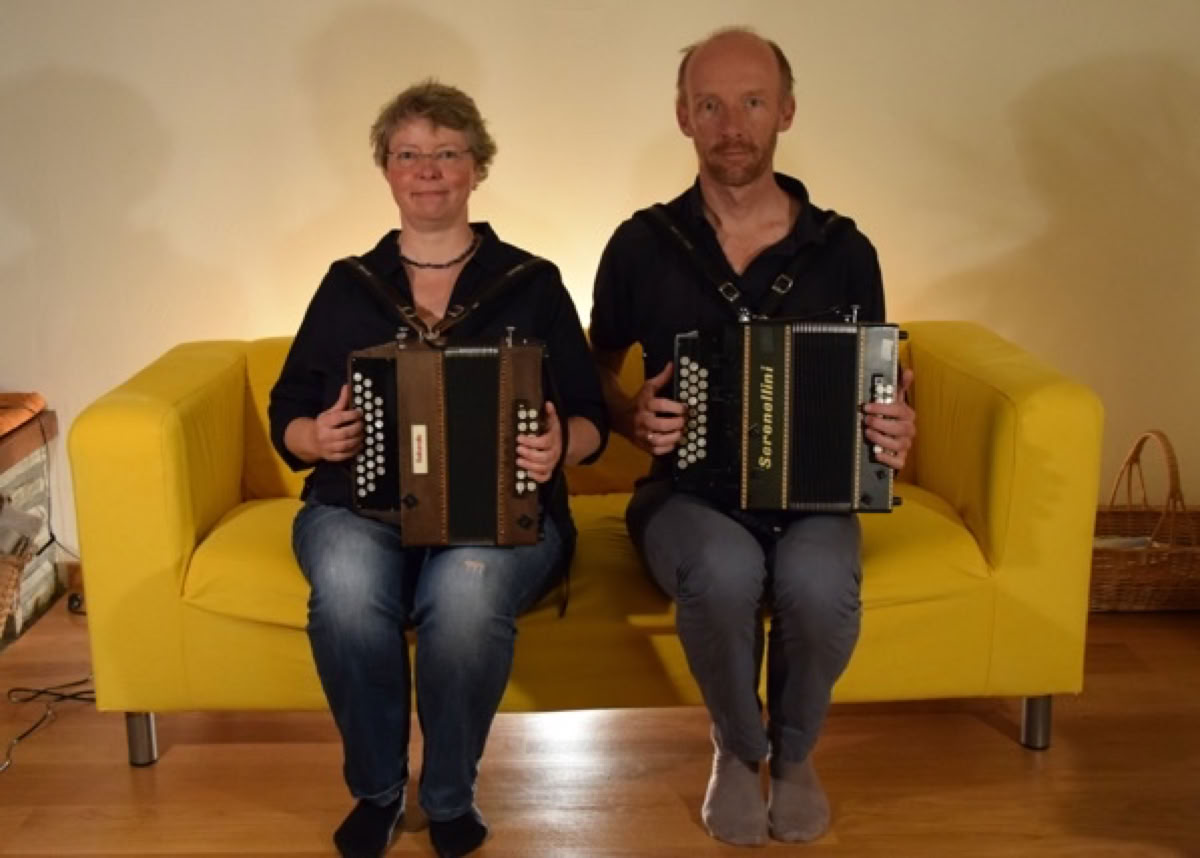 Neue und alte europäische Volksmusik von zart bis mitreißend mit zwei diatonischen Akkordeons und zwei chromatischen Stimmen.