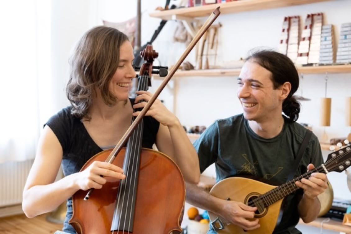 Feather and Fox ist ein neues belgisch-deutsches Balfolk Duo. Victor und Christiane lernten sich in einem Berliner Sommer am Spreeufer kennen. Von Beginn an spielt das Duo für Tänzer:innen und lässt sich von deren Energie inspirieren. Verspielt und feinfühlig erkunden sie die Klangmöglichkeiten im Zusammenspiel der zwölf Saiten von Mandoline und Cello und kreieren damit einen einzigartigen Klang, zugleich federleicht und energiegetrieben.